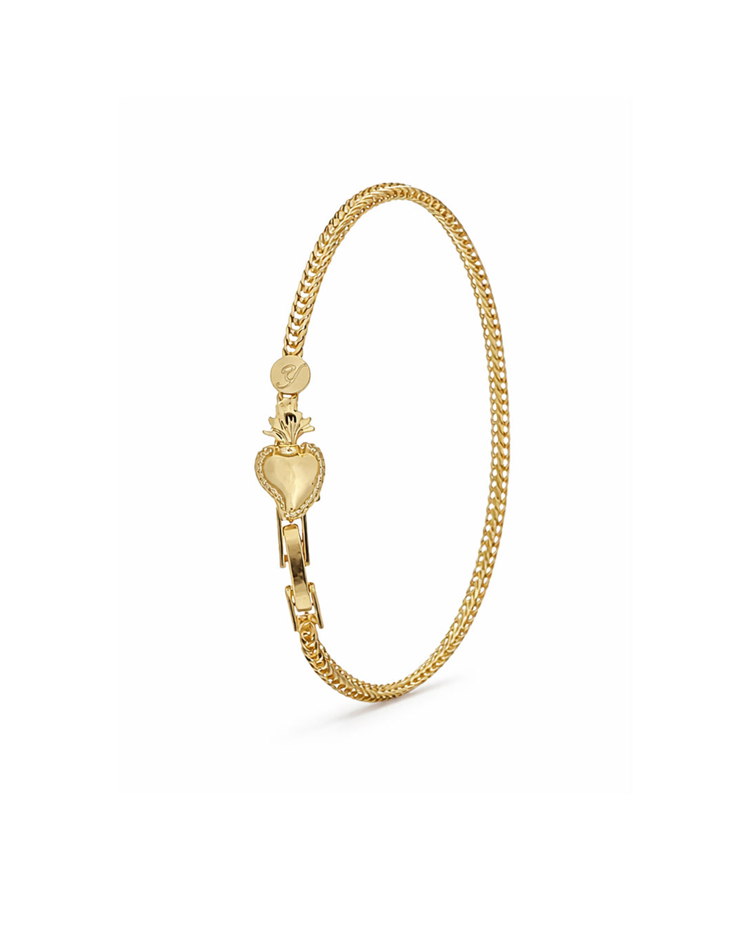 Il Bracciale Cuore Sacro unisce eleganza e significato in un gioiello dal carattere deciso ma raffinato. La catena intrecciata dona luce e movimento, mentre il cuore centrale, incorniciato e sormontato dalle iconiche fiamme, richiama passione, protezione e identità.